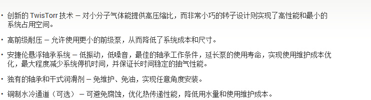 Agilent TwisTorr 304 FS 高真空渦輪分子泵采用 Twistorr 拖動(dòng)技術(shù)和安捷倫懸浮軸承,具有高性能、高可靠性及經(jīng)濟(jì)性。TwisTorr 拖動(dòng)技術(shù)對(duì)小分子氣體(如氫氣和氦氣)能提供高壓縮比,從而實(shí)現(xiàn)高通導(dǎo)量和高前級(jí)耐壓,進(jìn)而能使用更經(jīng)濟(jì)實(shí)惠、更小型的前級(jí)泵。 該技術(shù)使得轉(zhuǎn)子能采用緊湊的設(shè)計(jì),變得高效節(jié)能,并能保持較低的工作溫度。安捷倫懸浮軸承系統(tǒng)降低了噪音和振動(dòng),并能保證最佳的軸承工作條件,從而能延長(zhǎng)工作壽命,最大程度減少系統(tǒng)停機(jī)時(shí)間,并能確保長(zhǎng)時(shí)間穩(wěn)定的抽氣性能。 TwisTor